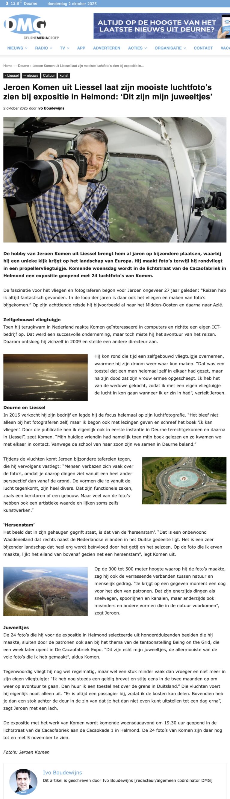 Lees meerDMG: Jeroen Komen uit Liessel laat zijn mooiste luchtfoto’s zien bij expositie in Helmond: ‘Dit zijn mijn juweeltjes’, 2 oktober 2025